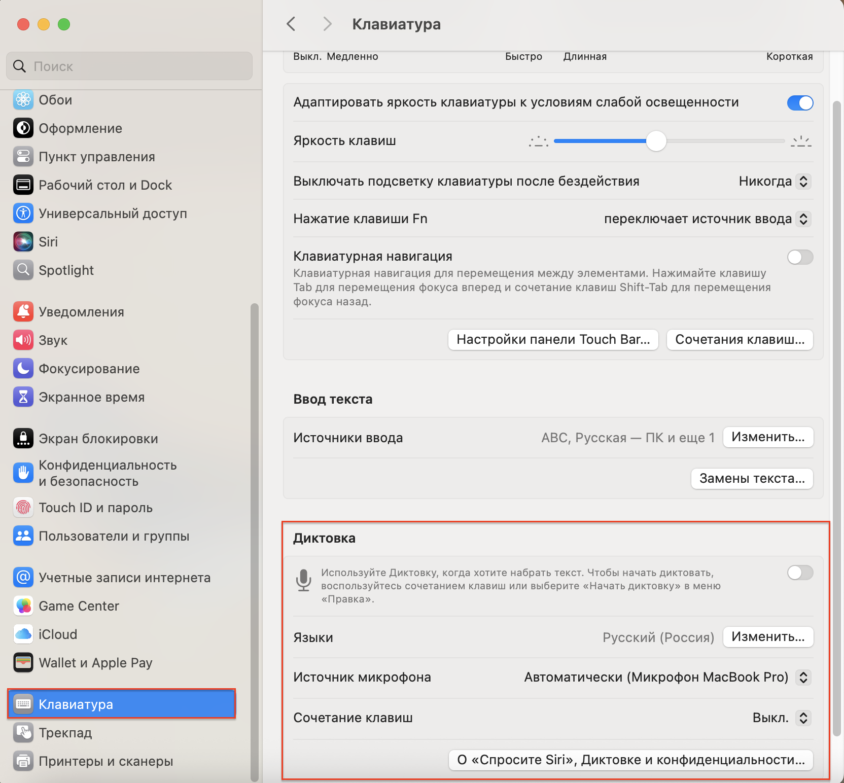откройте “Системные настройки” > “Клавиатура”;