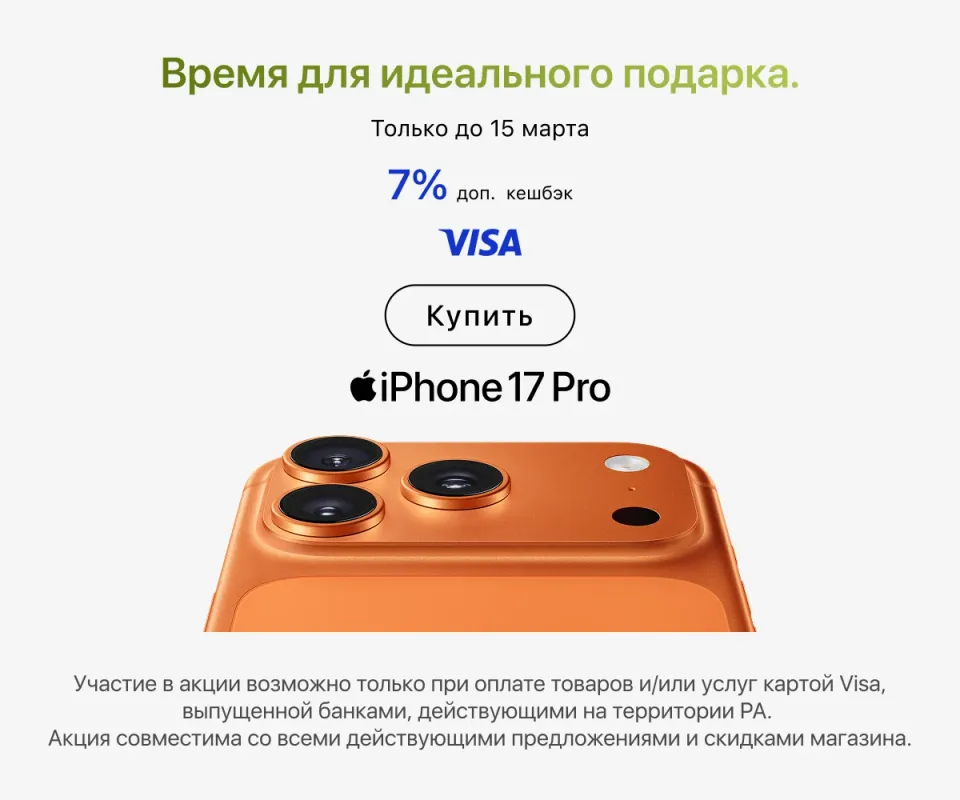 В iSpace удобно оформлять заказ как онлайн, так и офлайн. В любом случае вы получите оригинальную технику Apple с официальной гарантией и полной поддержкой. Покупайте новый гаджет у нас, получайте бонусы и наслаждайтесь всеми возможностями на максимум.