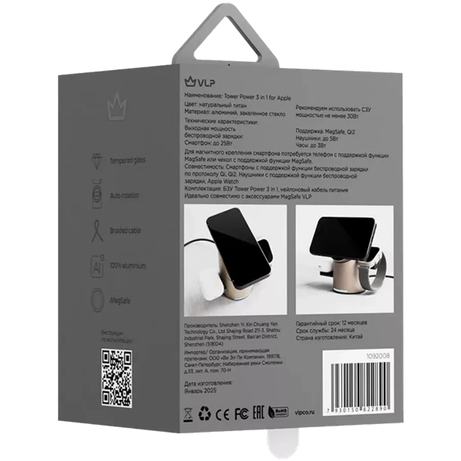 Wireless Charger VLP Tower Power 3 in 1 for Apple, Natural Titanium